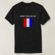 This fun, humorous shirt features an international maritime signal flag, the Tango flag (T flag). Its meaning, "KEEP CLEAR OF ME," appears above the flag in white Stencil lettering. Also available in a light-colored shirt.