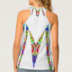 Women's All-Over Print Racerback Tank Top, White Piping, S