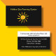 Modern tanning salon business card template online design with image of an artsy sun graphic and your company name featured on the front with your details on the back. A simple modern design layout you can customize online.