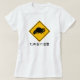 Watch out for tanuki! This shirt features a funny Japanese street sign, often placed along roads as a warning to motorists where raccoon dogs tend to cross the street. The caption on the bottom is the Japanese phrase "Tanuki ni Chuui," which means "Watch out for Tanuki."