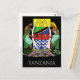 The coat of arms of Tanzania comprises a warrior's shield which bears a golden portion on the upper part followed underneath by the flag of Tanzania.