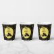 Throw the perfect party for tap dancers with these paper cups that are ready to be customized with your own message. They feature an illustration of a pair of tap dance shoes in black and gray with your text in black script lettering set against a sunny yellow gold background. The rims of the cups are decorated with a pattern of yellow bursts against a black background.
