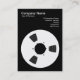 A business card template with a bold reel to reel tape spool motif on the front and back. Company name, business type and address on the front with name, job title, telephony, web and email addresses on the back, with a similar layout. This card can also be further customized.