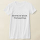 The material is a great quality that is hard to find with most tee shirts. Fabric was not see-through or thin at all, but was also very soft and comfortable. The shirt description states that it runs a little small, so I sized up one size for a perfect fit! I would definitely buy this type of tee shirt again because I love the fit and high quality fabric that I cannot find anywhere else. The printing was perfect and just as pictured. Loved the cute quote and really enjoy the tee in both the quality and design. I love quirky typography designs and funny quotes and I am extremely pleased with the overall quality and value I get at Zazzle!