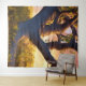 Tapestry is a form of textile art, traditionally woven by hand on a loom. It typically consists of a woven fabric background, often made of wool or other fibers, onto which various designs, patterns, or scenes are woven. These designs can range from simple geometric shapes to intricate pictorial representations of landscapes, historical events, mythological stories, or religious motifs.