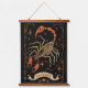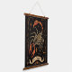 This tapestry shows a large scorpion winding between lunar symbols and constellations – powerful, transformative, symbolic.