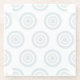 Glass coaster with a dotted pattern of targets in gray and light blue on a white background.