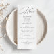 Elegante Tarjeta de Menú de Boda en Caligrafía, Blanco y Negro. Con las minutas personalizadas, podrás compartir con tus invitados los detalles del menú de tu boda, manteniendo un diseño coherente con tus invitaciones. ¡Una opción perfecta!