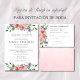 Wedding RSVP in Spanish with pink flowers and calligraphy script