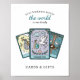 This tarot themed baby shower poster features a hand-drawn stack of baby-themed tarot cards with reimagined designs perfect for a fortune teller themed baby shower! With a World thank you card in the center of the spread, and a message that reads, “your kindness means the world to us” this sign perfectly coordinates with a tarot inspired celebration, making it a thoughtful and decorative addition to your party setup. Designed to be framed and displayed as part of your shower decor, this sign is sure to impress your guests! Suited for celestial baby showers, magical baby shower aesthetic, or showers around Halloween. Available as a printed poster or a downloadable file you can print at home for a more affordable option. Coordinates with other items in the tarot baby shower collection. Sizing: Why 8x10 Is Ideal: