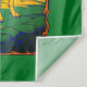 Tapestry in the tarot card, "The Fool," portraying a confident adventurer standing on a cliff, symbolizing new beginnings. Dressed in rugged attire, he’s accompanied by a loyal dog. The vivid landscape and golden sky conveys freedom, optimism, and the courage to embrace life’s unknown paths.