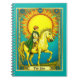 Notebook in an illustration of the tarot card, “The Sun,” depicting a radiant sun dominating the sky, its golden rays surrounding a boy riding a white horse. He symbolizes innocence and vitality, while the vivid blue background radiates joy and clarity.