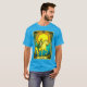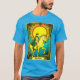 Tee in an illustration of the tarot card, “The Sun,” depicting a radiant sun dominating the sky, its golden rays surrounding a boy riding a white horse. He symbolizes innocence and vitality, while the vivid blue background radiates joy and clarity.