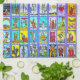 Collection of colorful tarot cards from Major and Minor Arcana. Set on a blue gradient background.