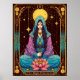 Poster in "The High Priestess" tarot card, featuring a serene, meditative figure with a crescent moon on her forehead, holding a golden scepter. Surrounded by celestial symbols, a glowing halo, and a blooming lotus, it embodies intuition, wisdom, and spiritual awakening in intricate, mystical detail.