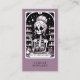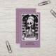 A unique nail technician business card featuring a skeleton with tools of the nail technician. A unique style with a touch of humor. Pale violet & black.