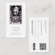 A unique nail technician combination business card and appointment card including social media and QR code, featuring a skeleton with tools of the nail technician in a unique style with a touch of humor. Pink & black.