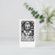 A unique nail technician business card featuring a skeleton with tools of the nail technician. A unique style with a touch of humor.