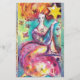 The Major Arcana Star.Mysterious allegorical contemporary painting .Colorful watercolor painting with gold foil by Bulgan Lumini (c).Magic gold sparkles in bright teal,blue green ,yellow colors .Mixed media painting with golden and silver foil .
