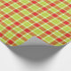 Tartan check style graphic Christmas wrapping gift paper in warm red, lime green and a touch of white.