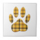 A cute tartan, plaid, dog paw print in orange, black, white, green and red colors.