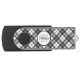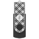 Tartan pattern Christmas black white Monogram Flash Drive