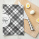 Tartan pattern Christmas black white Monogram Kitchen Towel