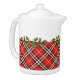 Tartan Plaid Holiday Teapot with Holly - Medium