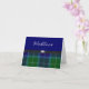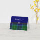 Great looking traditional tartan plaid note cards, in blue and green. A black band, with a silver tone decoration stretches across the middle of the card, with plaid, on the bottom, of the card and solid blue, on the top. Text in white script is customizable to read anything you want. Very elegant note cards to add a special touch to your every day or special occasion correspondence.