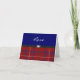 Great looking traditional tartan plaid note cards, in red, white, and blue. A black band, with a silver tone decoration stretches across the middle of the card, with plaid, on the bottom, of the card and solid blue, on the top. Text in white script is customizable to read anything you want. Very elegant note cards to add a special touch to your every day or special occasion correspondence.