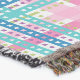 A quality printed throw has its advantages. This is a much finer weave throw than its loopier cousins, and though lighter, it is worth the investment for custom room accessorizing. The back is much prettier than the typical brown, and the fringe on the long sides very vivid, the selvage nicely done. Before photographing, I washed the throw in cold water, delicate, with a thicker woven throw the same size. On tumble dry low, this throw was dry in half the time as the other. This is a very practical quality if you use throws for furniture covers or to wrap up in frequently. The sleekness of the fabric makes it a great layer for accenting or protecting without the feeling of sitting on too much stuff. Perfect for napping or when you feel a light chill coming on. The color printing is beautiful and on this fabric, matched the design and color of my Photoshop image. This is an advantage for blending room fabrics and colors. The fringe on the short sides prints the colors from the design image and therefore varies from the side fringe. I streaked a white fractal line through the plaid pattern to give the illusion of weaving. This printed as crisp as an illusory thread, and put some white in the short side fringe, showing another advantage of print vs loomed- for artistic purposes, line lines, detail, and color integrity can be planned and preserved. My loomed throws have color limitations and more of a needlepoint texture. Print throws reproduce an exact image. The throw felt a little stiff straight out of the package, but this went away in the first delicate wash. Of course I searched the wash water for ink or bleeding and there was none.