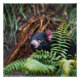 A Tasmanian devil, concealed amid lush ferns, exudes an air of mystery in its natural habitat, capturing a moment of elusive wildlife charm.