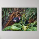 A Tasmanian devil, concealed amid lush ferns, exudes an air of mystery in its natural habitat, capturing a moment of elusive wildlife charm.