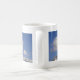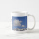 Tasse mit Schneeberg und lustigen Wolken vor blauem Himmel. Winterferien-Feeling beim Trinken :-)
