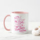 I was thrilled this came out so well. It is a very attractive mug with the colored handle and interior. Being able to personalize it was easy! It was designed for an end of the year thank you gift to the special recipient. perfect. Text lines up perfectly parallel to the top edge of the mug.