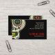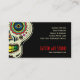 Customizable business card template for tattoo art studio, body piercings shop, make-up artists and related services. Colorful design featuring a tribal skull illustration with Aztec ethnic inspired motifs.