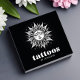 Elevate your professional image with our modern tattoo artist business card. The front features a striking white mystical sun tattoo design set against a sleek black background. Complementing the artwork, elegant script typography spells out "tattoos," accompanied by your name, making a bold statement. Personalize the back with your contact details, social media handles, and a convenient QR code for easy access to your portfolio or booking page. This card seamlessly blends artistic flair with professional details, perfect for making a lasting impression.