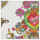 Colorful fabric pattern with Tree of Life on Day of the Dead theme. Funny skulls, fired heart, flowers, Catrina and folk elements.