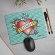 Tattoo Style Heart Feminist on Aqua Mouse Pad - Be ready to rock out with this tattoo style heart mouse pad. Style up the home office or just pick one up as a really rockin’ gift option for that awesome friend, family member or co worker in your life. Personalize the text to your liking and don’t forget to rock on folks!