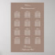 Taupe 12 Table Wedding Seating Chart Poster, please personalize the names of the couple and the names of the guests along with any of the other text that you may wish to personalize. A stylish seating chart poster featuring elegant white text on a lovely taupe background.