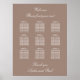 Taupe 9 Table Wedding Seating Chart Poster, please personalize the names of the couple and the names of the guests along with any of the other text that you may wish to personalize. A stylish seating chart poster featuring elegant white text on a lovely taupe background.
