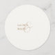Chic, fresh and playful. This circular menu card template features a set of contemporary fonts in taupe with a light beige taupe circle frame, against a chic ivory background. It includes 4 meal and drink sections. The back of the card includes a couple monogram.