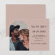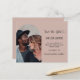 On front: Add your own vertical size photo inside the arch photo frame. A trendy taupe colored background, black text. Templates for names and the date. The name and the text: Save the Date are written with a modern hand lettered style script with a heart.