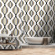 Taupe Beige Tan Gray White Black Ogee Wave Pattern Wallpaper