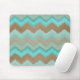Taupe Brown Aqua Turquoise Ikat Zigzag Pattern Mouse Pad