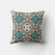 Taupe Brown Teal Green Ivory Orient Tribal Art Outdoor Pillow