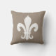 Taupe color fleur de lis throw pillow. Elegant fleur de lys design for classy home or business decoration. Perfect decor for sofa or bed. Custom background color.