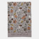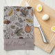 This taupe gray Thanksgiving Fall Harvest and Horns kitchen towel features a hand-drawn Fall Harvest pattern in black ink against an elegant taupe background, capturing the spirit of autumn.
