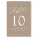 Trendy, minimalist wedding table number cards featuring white modern lettering with "Table" in a modern calligraphy script. The design features a taupe background or color of your choice. The design repeats on the back. To order the table cards: add your name, wedding date, and table number. Add each number to your cart individually and check out when you're finished.
