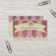 Business card in taupe and pink with polka dots and swirls and pink iced cupcake. Back in shabby taupe with swirls top border. Perfect for bakeries, chefs, bakers, cake decorators.